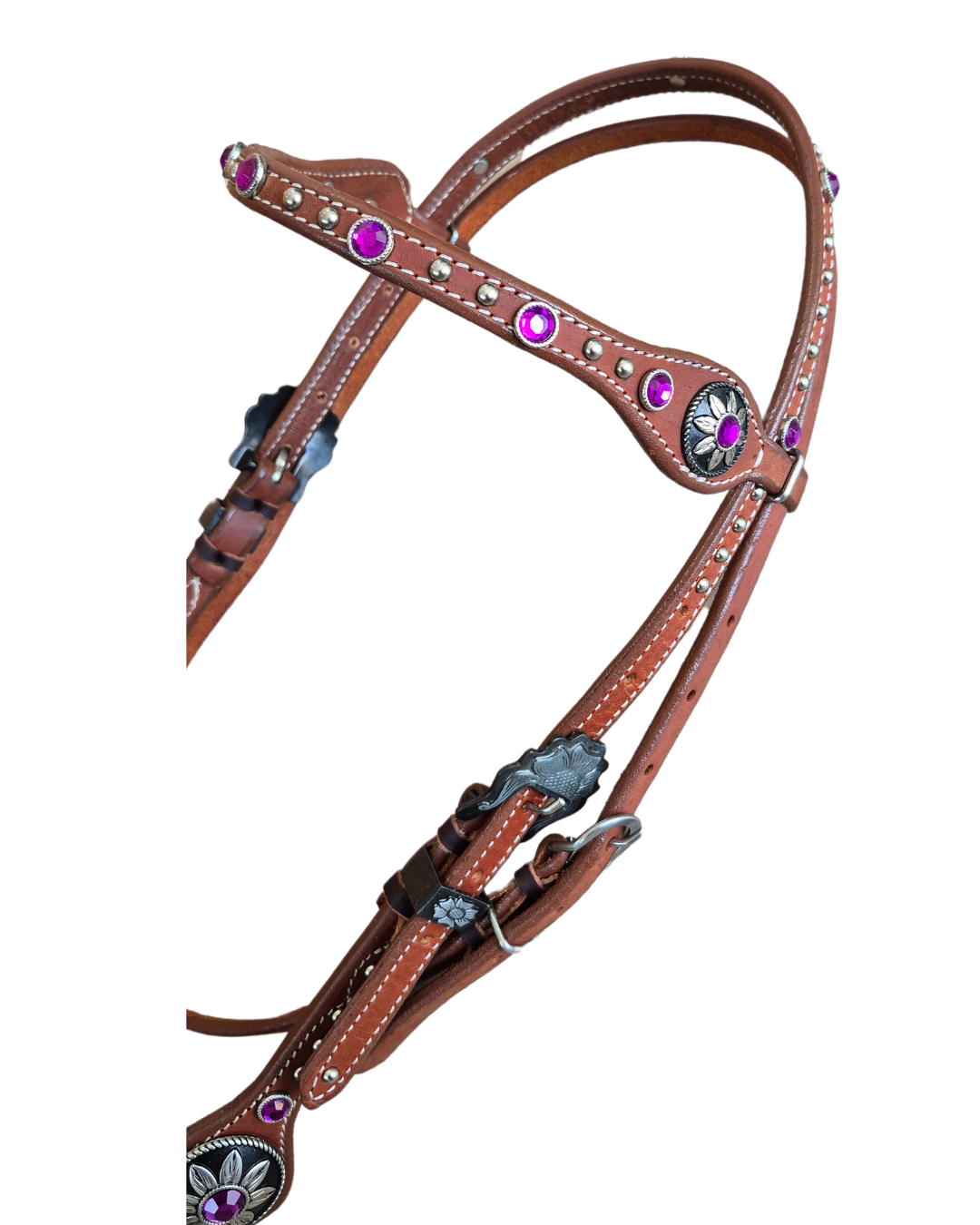 Cabeçada de testeira em couro marrom pedras roxo