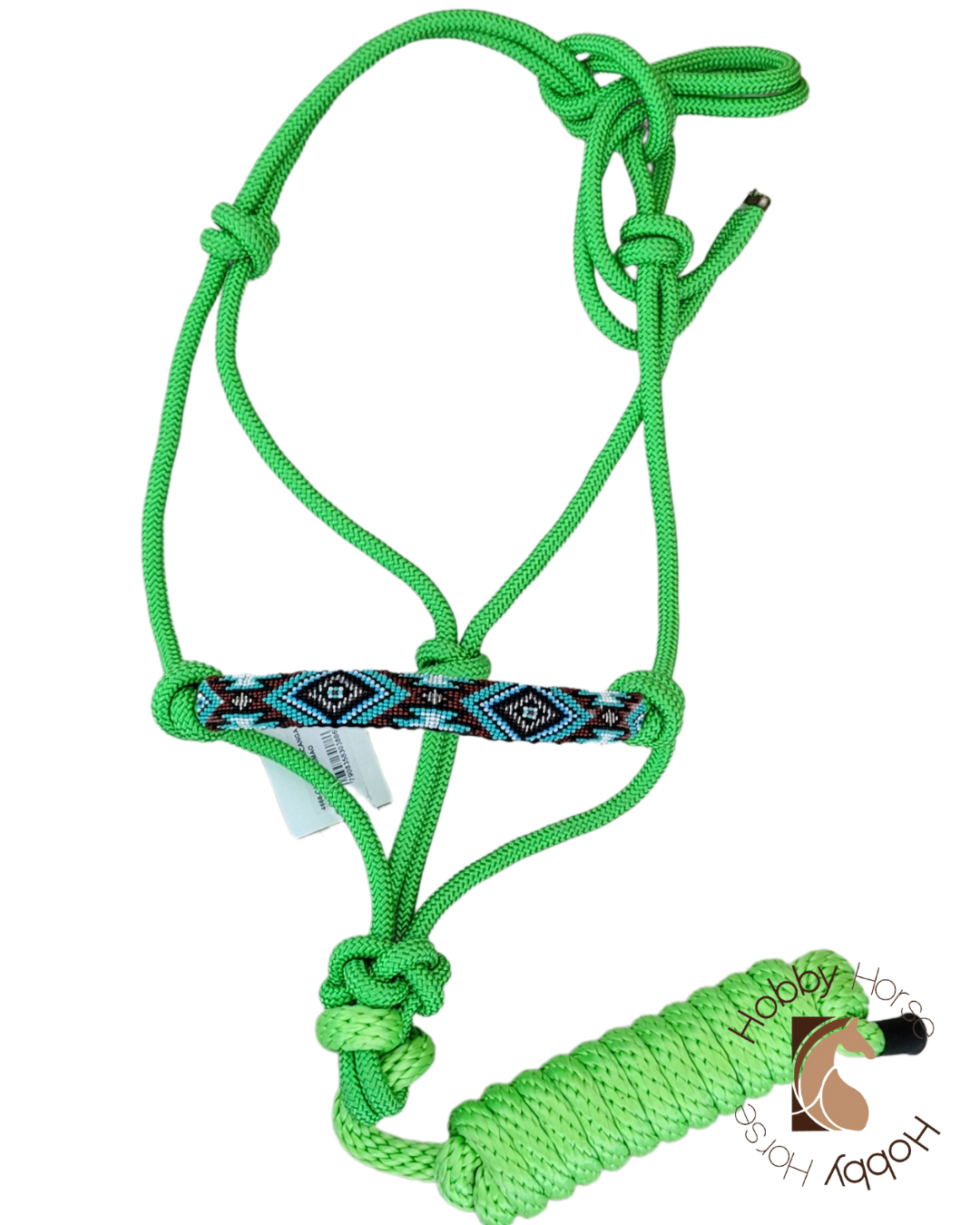 Cabresto 7 nós bordado em miçangas verde limão Boots Horse