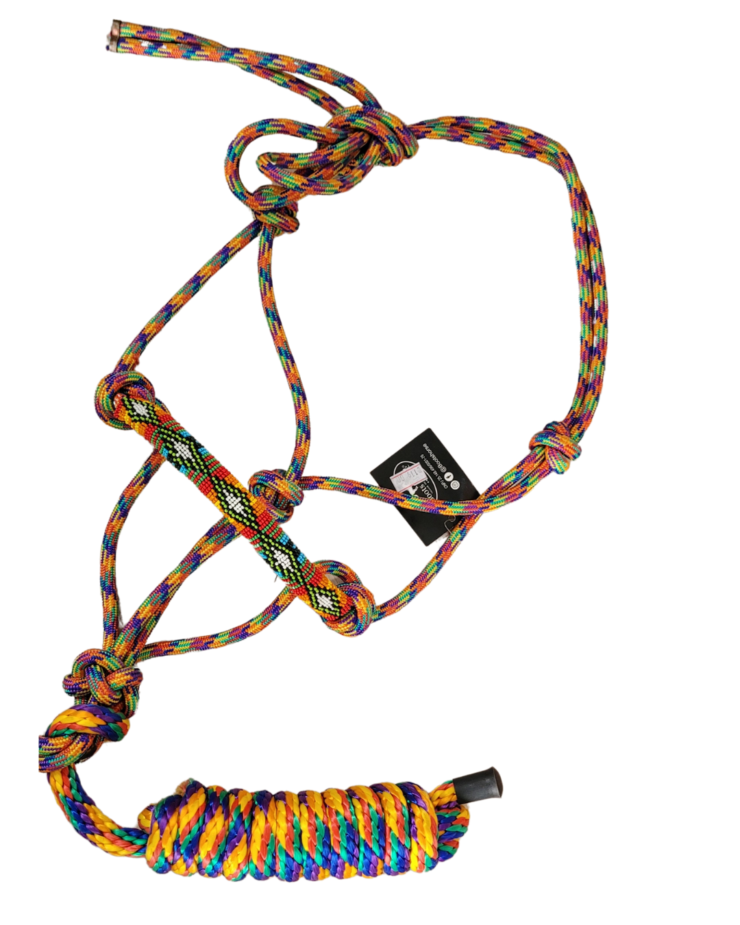 Cabresto 7 nós colorido bordado em miçangas com cabo
