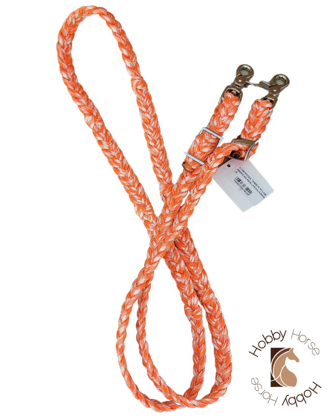 Rédea de nylon trança chata laranja/branco com mosquetão